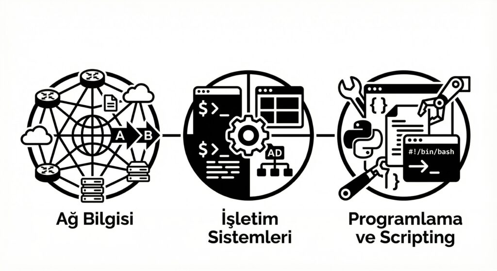 Siber güvenliğin temeli, bilgisayar bilimlerinin temellerine dayanır. İleri seviye saldırı tekniklerine geçmeden önce şu üç alanda yetkinlik kazanılmalıdır: